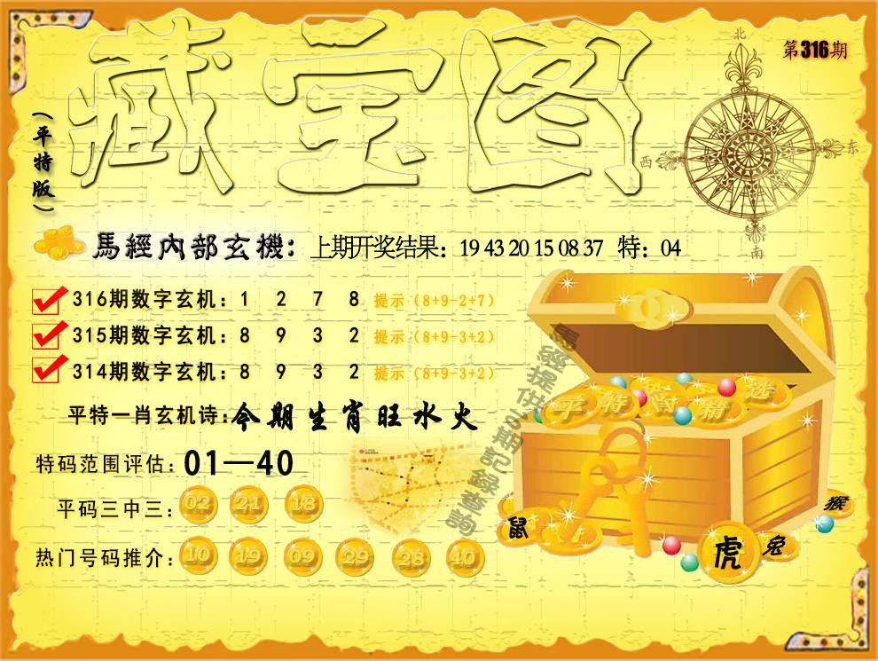 316期:平特藏宝图玄机:【今期生肖旺水火】 解:今期生肖旺水火,解兔,平特兔 推荐平码:10.19.09.29.28.40 开奖结果:20.29.40.42.17.25T24 |