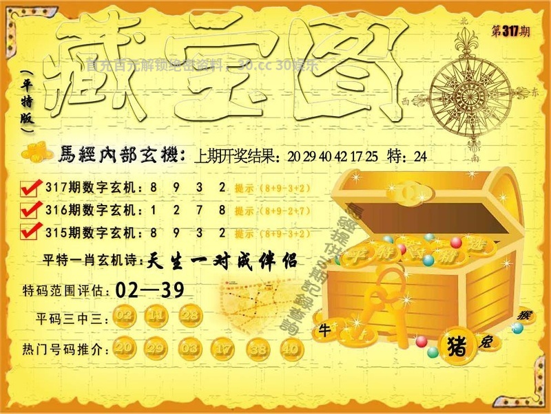 317期:平特藏宝图玄机:【天生一对成伴侣】 解:天生一对成伴侣,解猴,平特猴 推荐平码:20.29.03.17.38.40 开奖结果:05.10.03.06.01.32T18 |